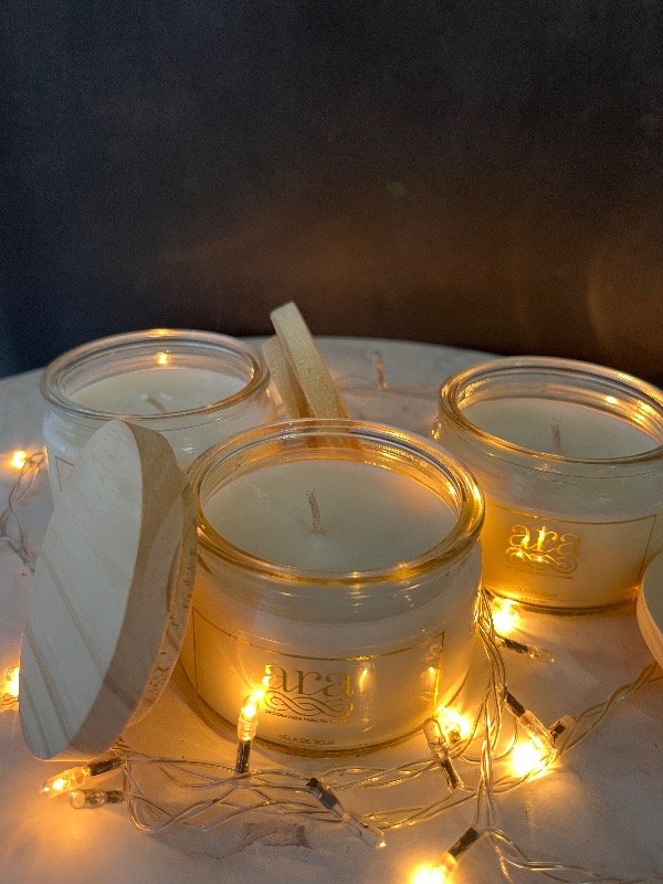 Todas nuestras velas están hechas y vertidas a mano con cera de soja natural, amigable con el medio ambiente, están libres de toxinas. Su punto de fusión es bajo y se consume en su totalidad.