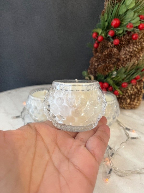 Vela aromática en envase de vidrio texturizado con bolitas