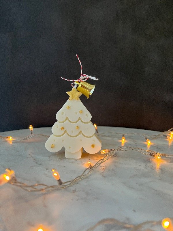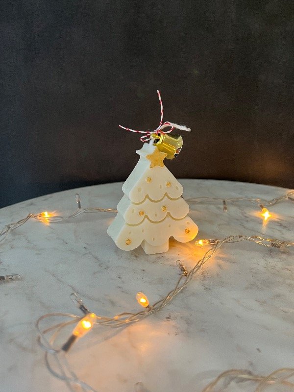 Vela de cera de Soja natural hecha en molde de silicona en forma de Arbolito de Navidad