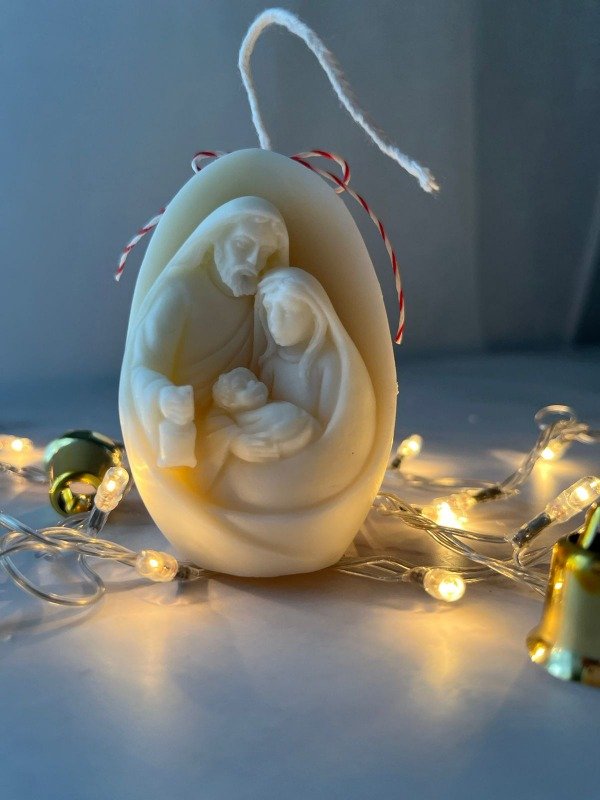 Vela de cera de Soja natural hecha en molde de silicona en forma de Ovalo con Nacimiento Niño Dios